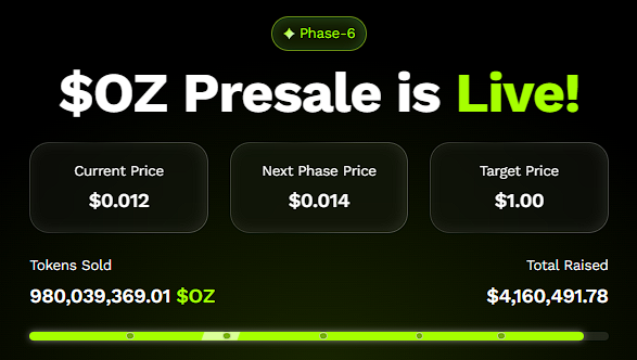 Moreover, Ozak AI has rapidly gained momentum in its presale, raising over $4.1 million and selling more than 980 million tokens in total—an impressive milestone that reflects growing investor confidence.