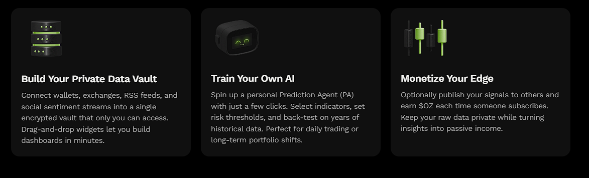 Ozak AI is a blockchain-based crypto project that provides a technology platform that specializes in predictive AI and advanced data analytics for financial markets. Through machine learning algorithms and decentralized network technologies, Ozak AI enables real-time, accurate, and actionable insights to help crypto enthusiasts and businesses make the correct decisions.
