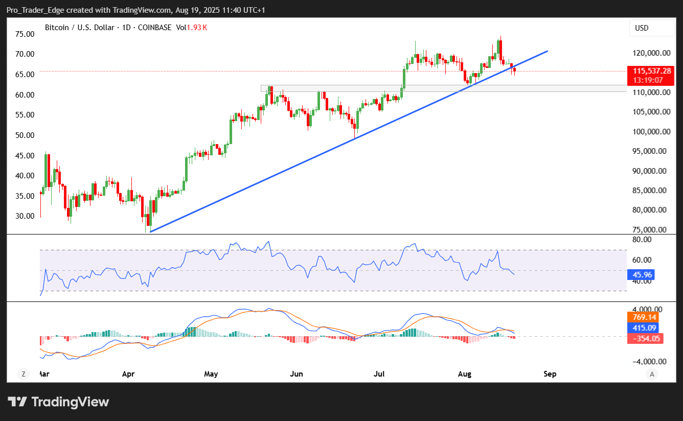 The world’s largest cryptocurrency faces a pivotal moment as Bitcoin hovers near critical technical levels. BTC recently tested $114,707 after encountering selling pressure from profit-taking activities.