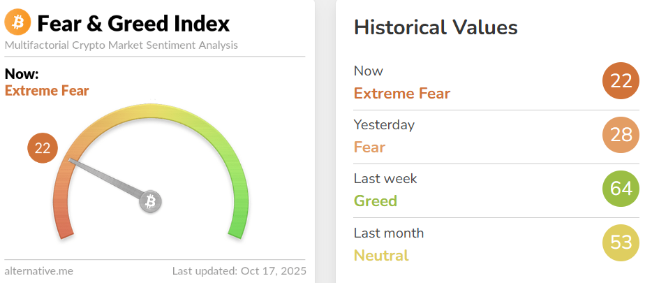 This represents a dramatic shift from just one week earlier when the index showed 71, indicating greed. The rapid sentiment decline mirrors bearish periods from 2018 and 2022 when similar fear levels preceded market bottoms.