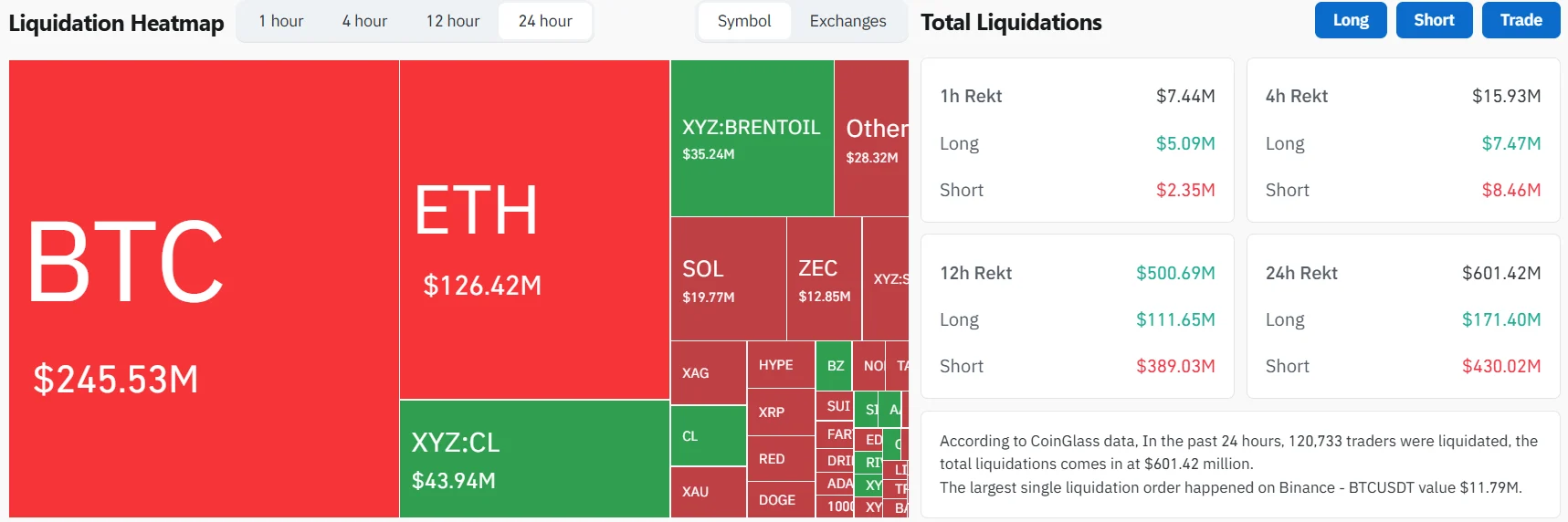 - The price surge triggered approximately $600 million in crypto futures liquidations, predominantly short positions.