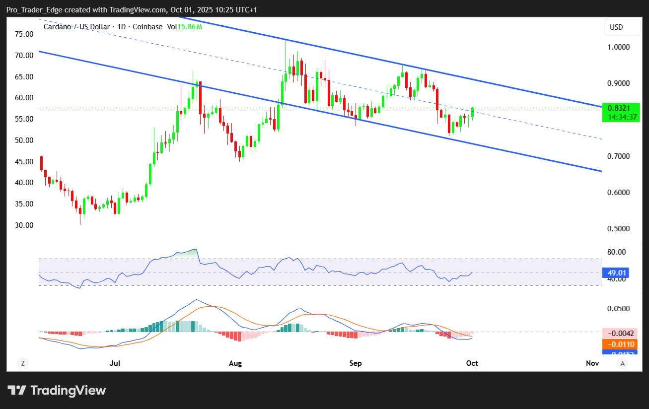 Cardano price now sits at a critical juncture. A sustained move above $0.85 with strong volume could open the path toward $0.95. Conversely, a drop below $0.75 would suggest continued weakness and potential for further downside.