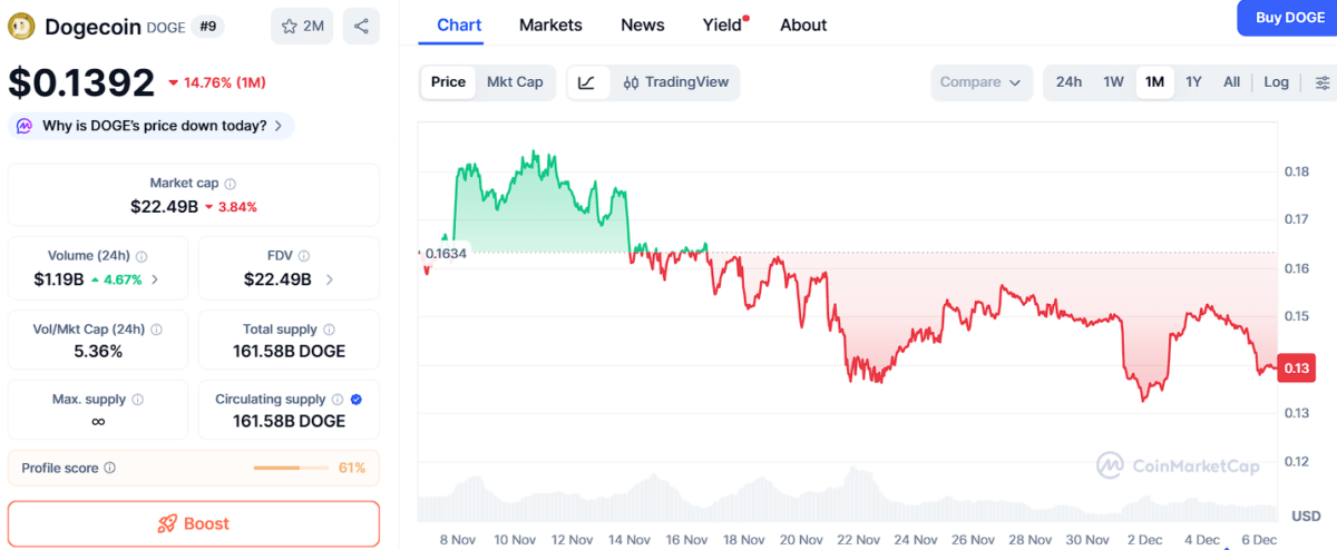 Ozak AI’s prediction models grow more aggressive as early traction accelerates, but Dogecoin’s own trend is beginning to show the early signs of a classic reversal structure. DOGE maintains strength above support at $0.1350, with additional reinforcement at $0.1315 and a deeper bullish zone near $0.1280 preserving long-term upward potential.