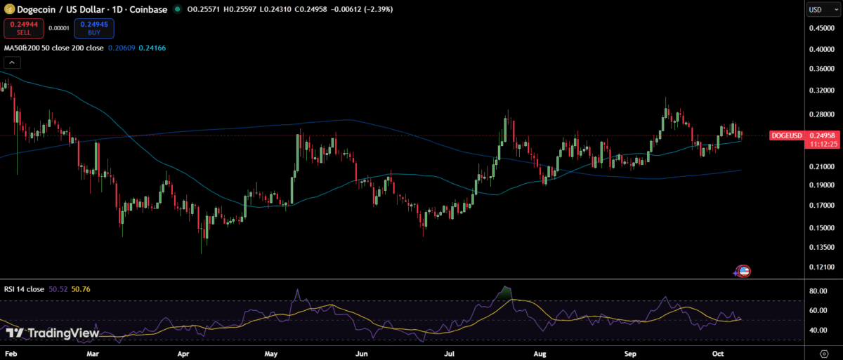 The latest Dogecoin price prediction is sparking new interest among investors. Technical models suggest the price could climb by November 2025. If the current setup plays out, DOGE could record a potential 30% upside from its present levels near $0.25.