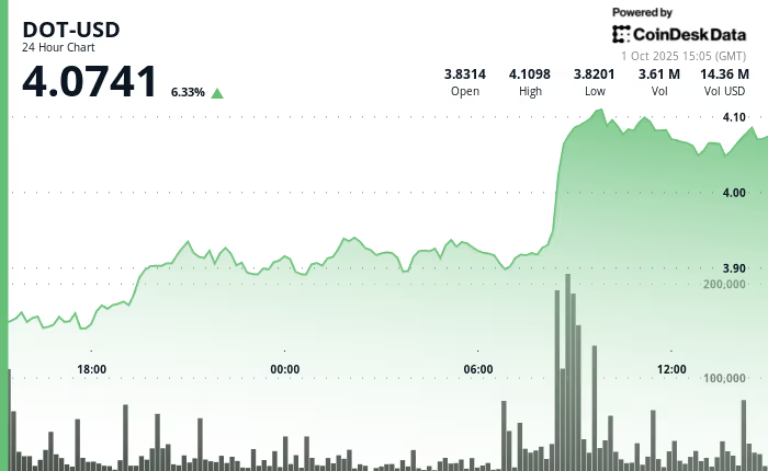 That backdrop has coincided with a clean technical pop: DOT jumped roughly 6% in the last 24–48 hours of trading around the vote headlines, stretching from ~$3.88 to ~$4.11 before consolidating—an area technicians are watching as a pivot for higher targets.