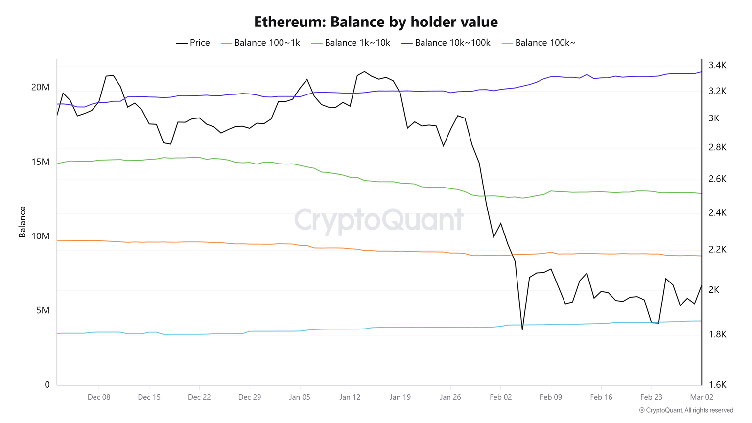 During the past seven days, addresses containing between 10,000 and 100,000 ETH acquired 120,000 tokens just on Sunday and Monday. Cumulative whale accumulation for the entire week totaled 320,000 ETH. Meanwhile, retail-sized wallets holding 100 to 10,000 ETH distributed approximately 210,000 ETH during the same period.