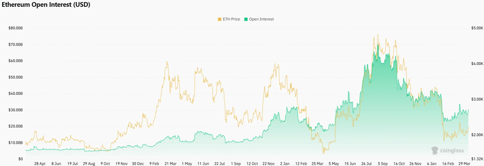 Open interest in Ethereum futures expanded to 6.4 million ETH. This figure approaches the record high of 7.8 million ETH established in July 2025.