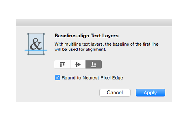 This plugin will help you to align text layers by their baselines. This plugin only works if you are using Sketch 3.3 or later. This plugin was created by abynim.