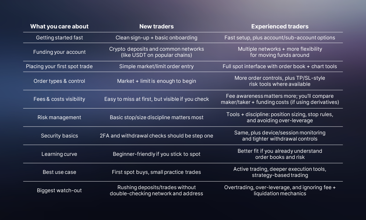 First, check platform fit. Make sure the features you plan to use are easy to access and easy to control. If you’re new, stick to spot and consider a scheduled approach like auto-invest to reduce emotional trading. If you’re experienced, focus on execution comfort and cost visibility.