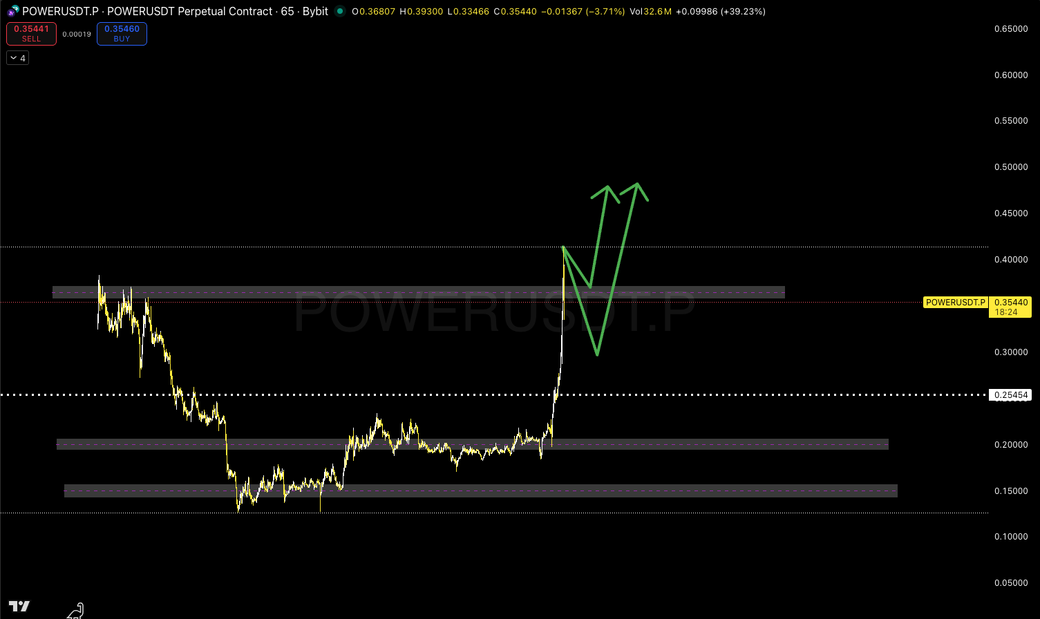 An analyst predicts the POWER price may rally to $0.50 soon. However, bulls must defend the $0.36–$0.38 support region if a downtrend occurs.
