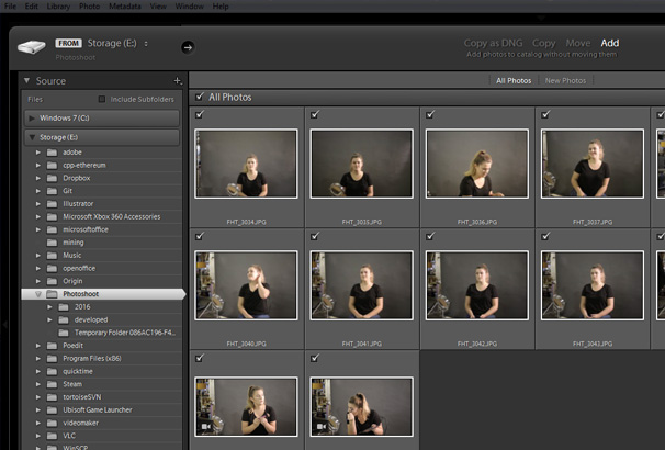 - Copy, Add, or Move / Copy as DNG – Using this function you can choose the way you want your files to be added to your new Lightroom Catalog. There is a caveat here; if you’re importing directly from an external flash disk or memory card, you won’t have the option of adding files to Catalog. You can, however, circumvent this by copying your photos to an external or internal hard drive.
