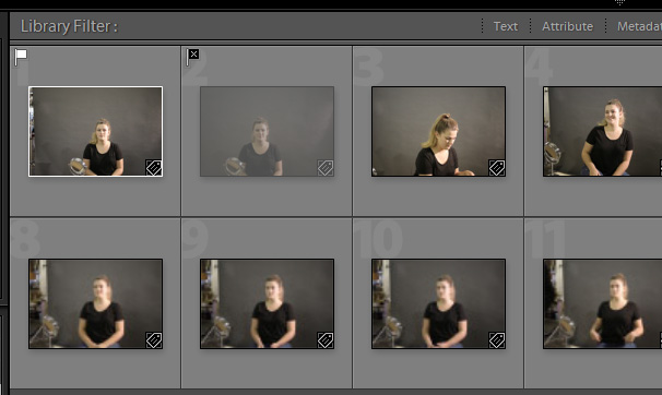 Once your photos are imported you can filter the images using flags. Essentially, you can assign two flags on each photo in Lightroom. One of these is Pick – accessed by pressing P – and reject accessed by pressing X on your keyboard. This will add a flag to each image like so :