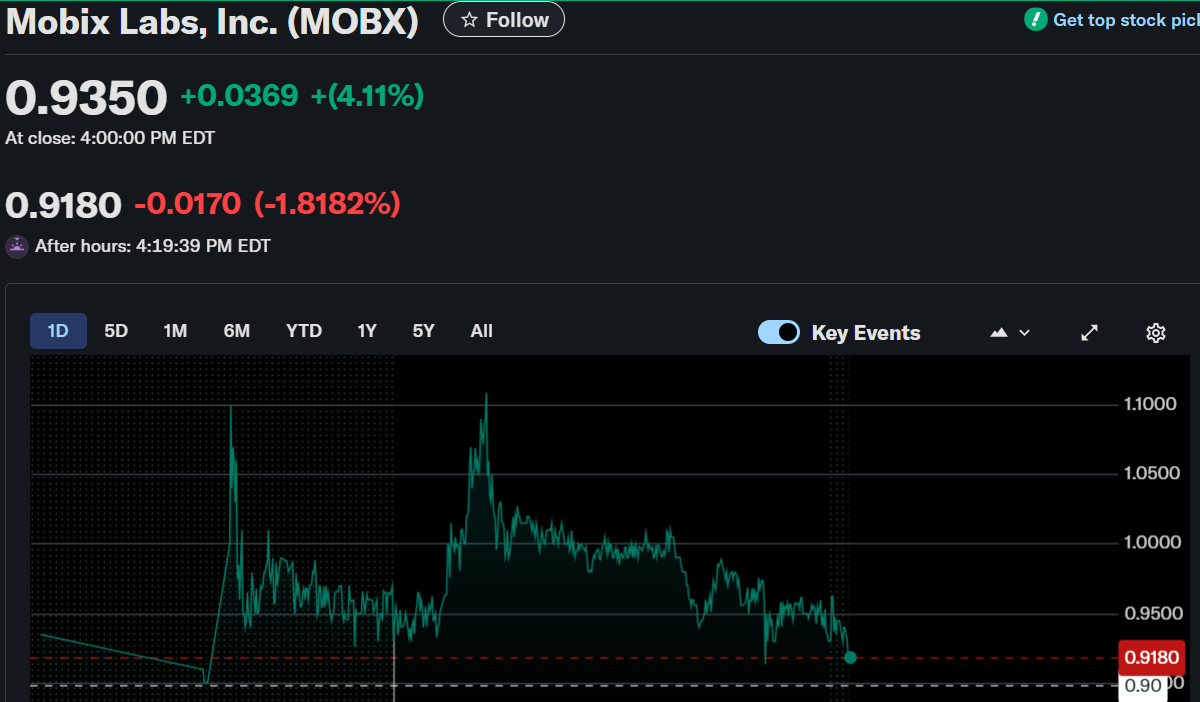 MOBX gained ground today as shares advanced 6.5% to $0.9565 during trading. The stock moved higher despite volatility and held near the one-dollar level after sharp swings earlier. Market interest strengthened as MOBX outlined its next phase of expansion anchored by a strategic acquisition program.