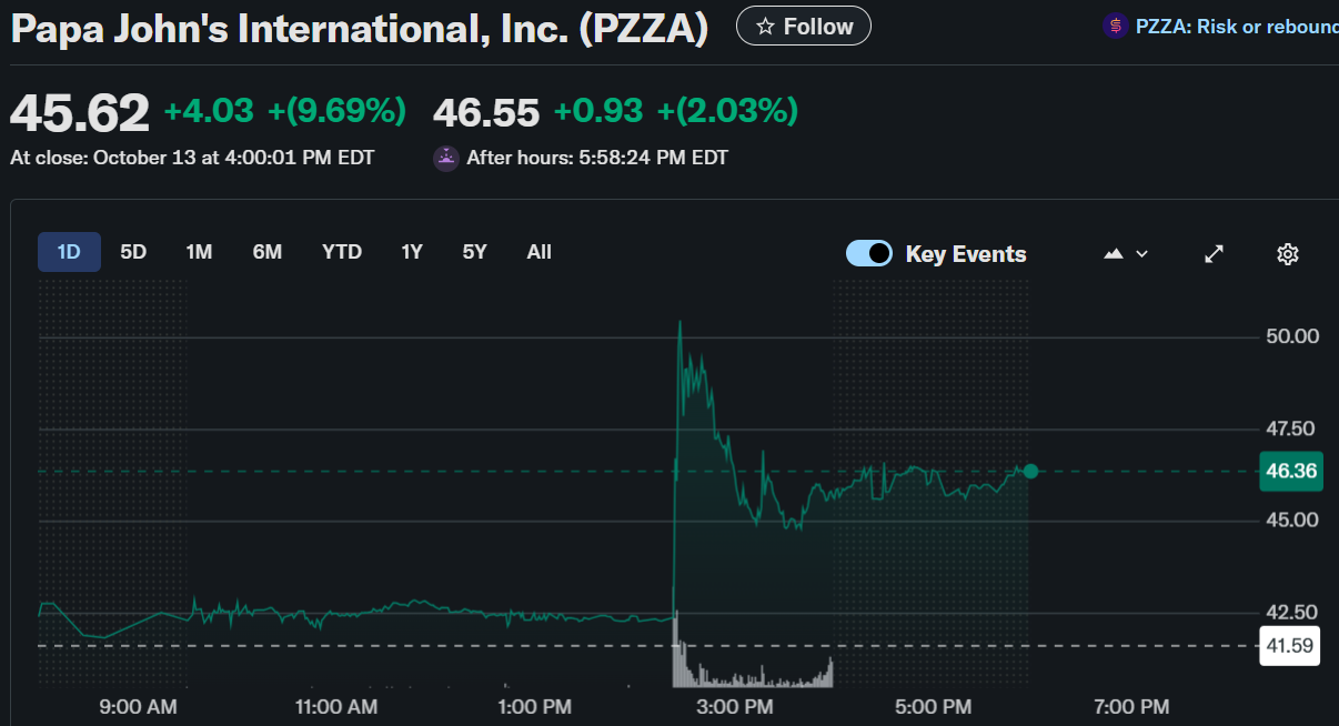 Apollo declined to confirm the development, and Papa John’s issued no public response to the speculation. , Trading volume and share movement indicated increased market interest and growing confidence in a deal. A source told StreetInsider that an agreement could materialize within weeks if negotiations remain on track.