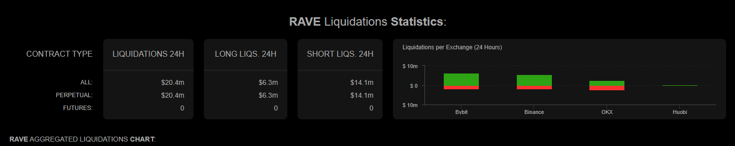 By April 15, RAVE transitioned into what market observers characterized as a managed retracement period. The Stochastic RSI indicator migrated toward oversold readings, while short liquidations accumulated to $14M across a 24-hour timeframe, indicating continued pressure on bearish positions. Open interest expanded to $141M during this consolidation phase despite price depreciation, which some technical analysts interpreted as strategic repositioning rather than mass capitulation.