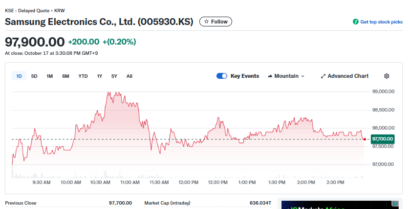 Shares of Samsung Electronics have been on an extraordinary run in 2025, soaring more than 84% since the start of the year and setting multiple record highs in recent weeks. On Friday, the stock gained 0.2%, closing at 97,900 won ($68.85).