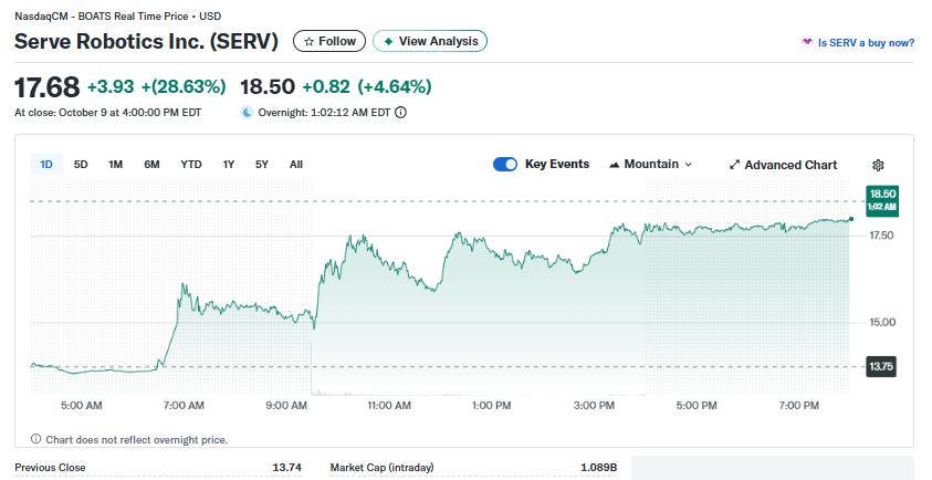 Serve Robotics Inc. (NASDAQ: SERV) shares skyrocketed 28.63% on Thursday following the announcement of a multi-year delivery partnership with DoorDash (NASDAQ: DASH).