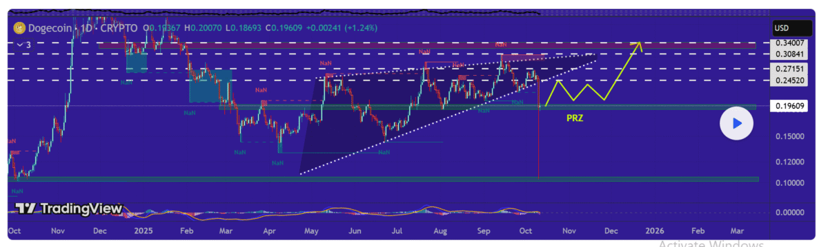 Dogecoin at $0.19 is sitting below resistance at $0.20677. Transfers of over 126 million DOGE, worth about $30 million, between wallets were detected. The market is watching whether those moves signal accumulation or impending selloffs.