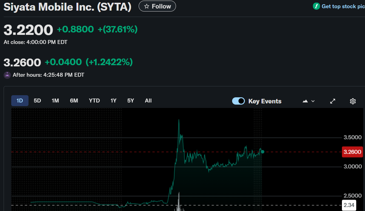 Siyata Mobile Inc. closed its merger with Core Gaming, triggering a sharp 37.61% surge in regular trading. The stock finished Monday at $3.22 and gained another 1.24% in after-hours, reaching $3.26. This marks a significant turning point as the company repositions itself as Core AI Holdings, Inc.