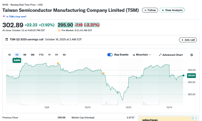 - TSMC shares jumped nearly 8% ahead of its Q3 earnings, fueled by strong AI chip demand.