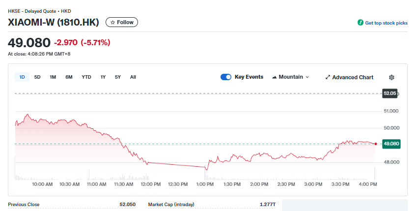 - Xiaomi stock fell 5.71% on October 13 following reports of a fatal SU7 EV crash in Chengdu, China.